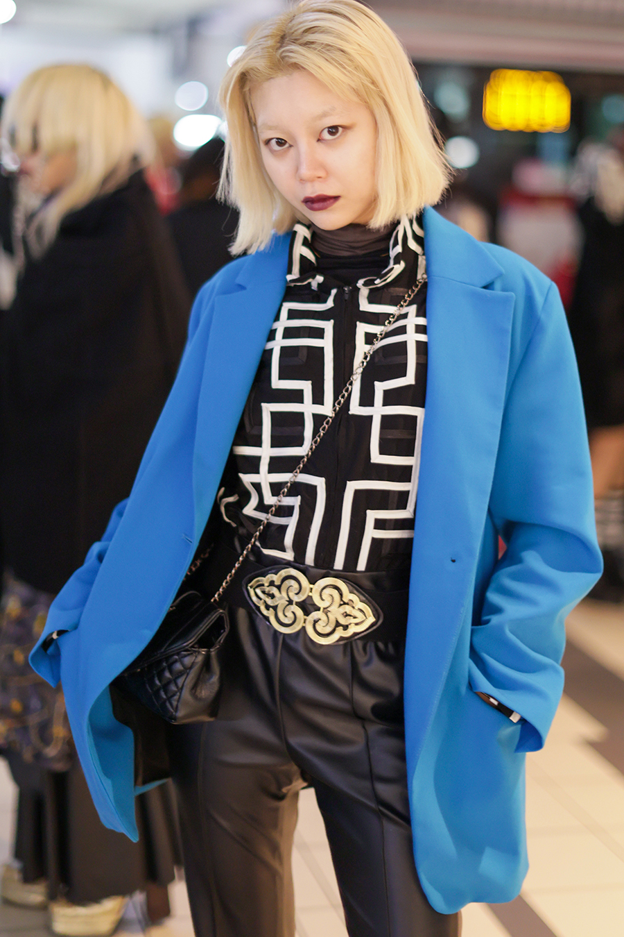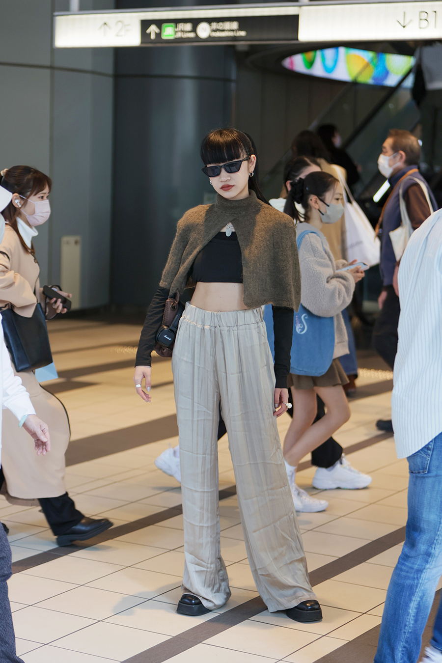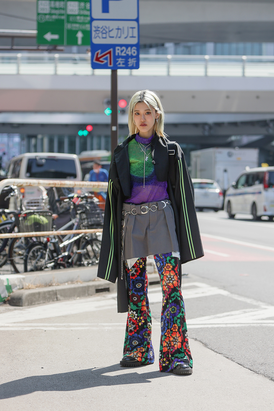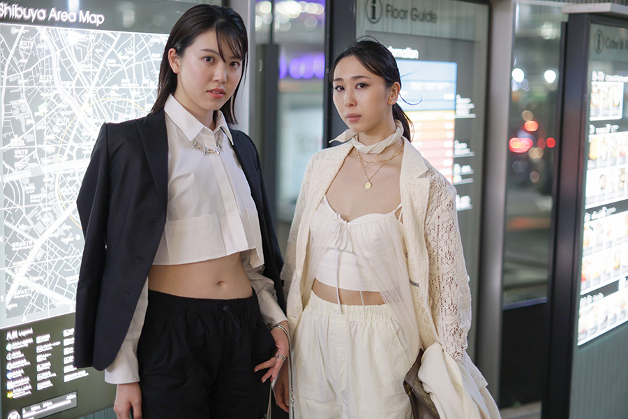 A street fashion photo of Tokyo Fashion Week in March 2023 and a street fashion photo of Shibuya Harajuku.