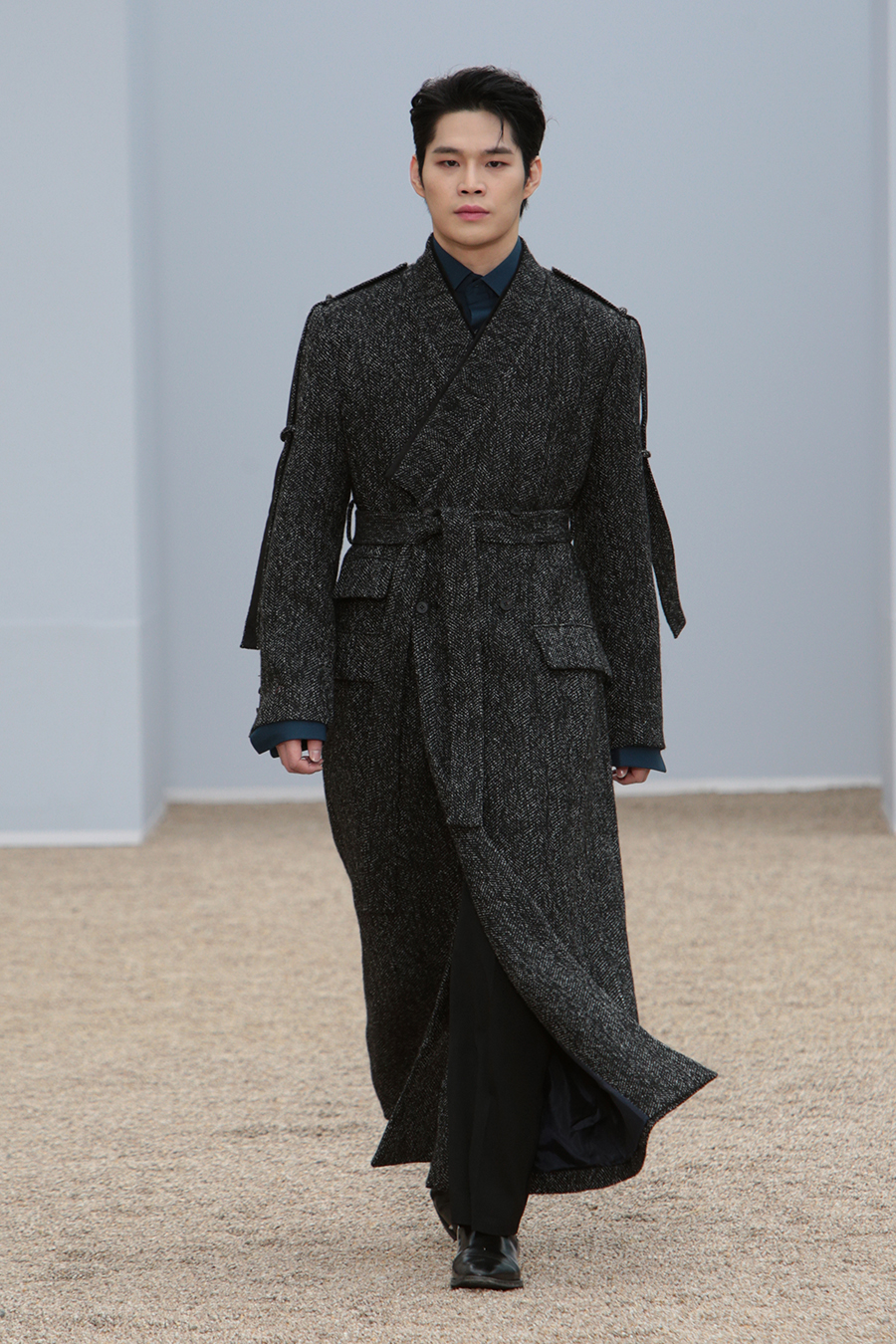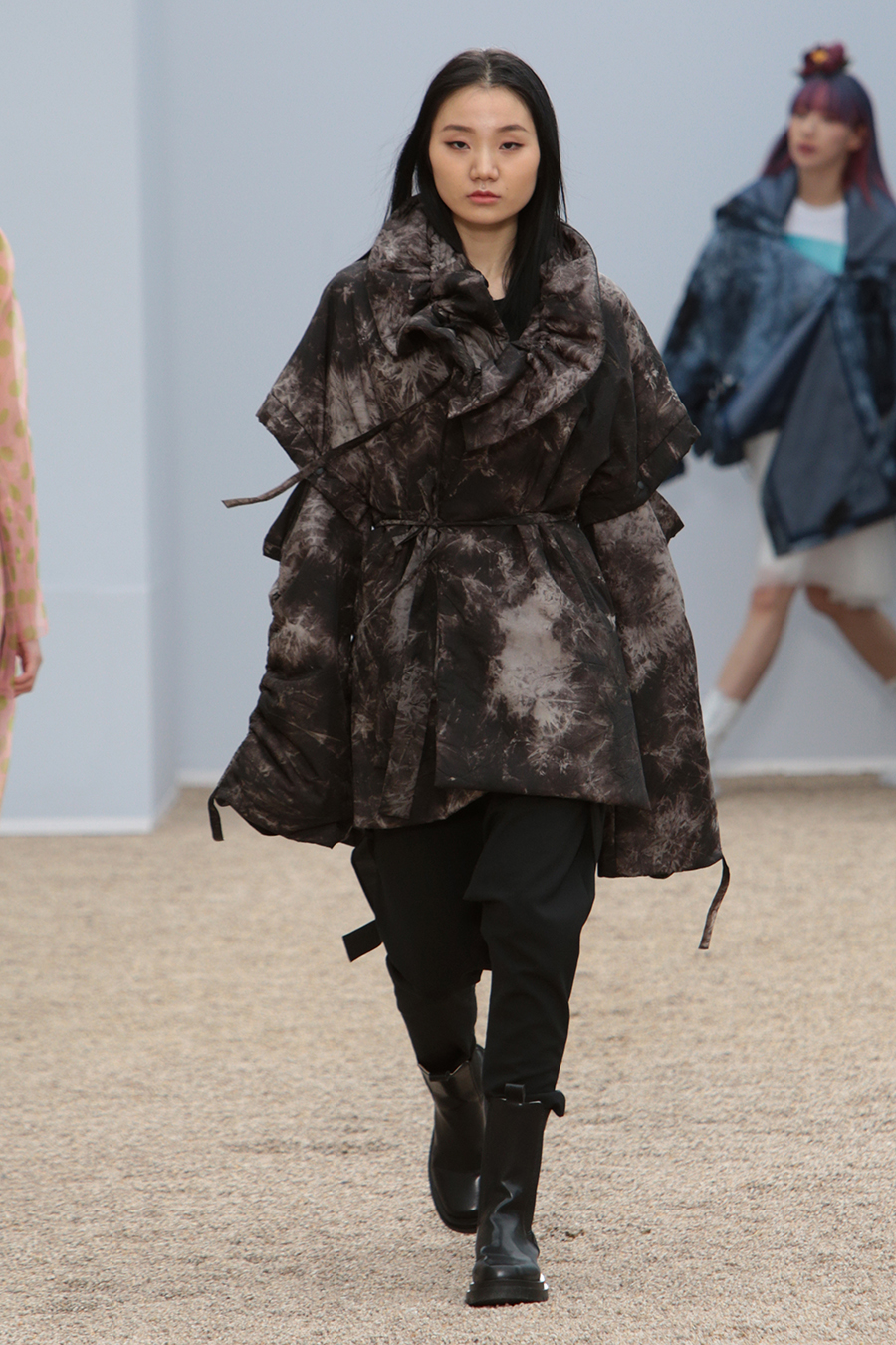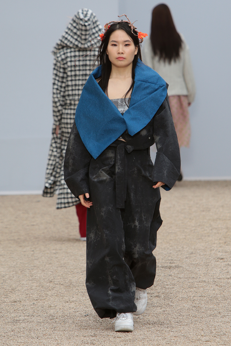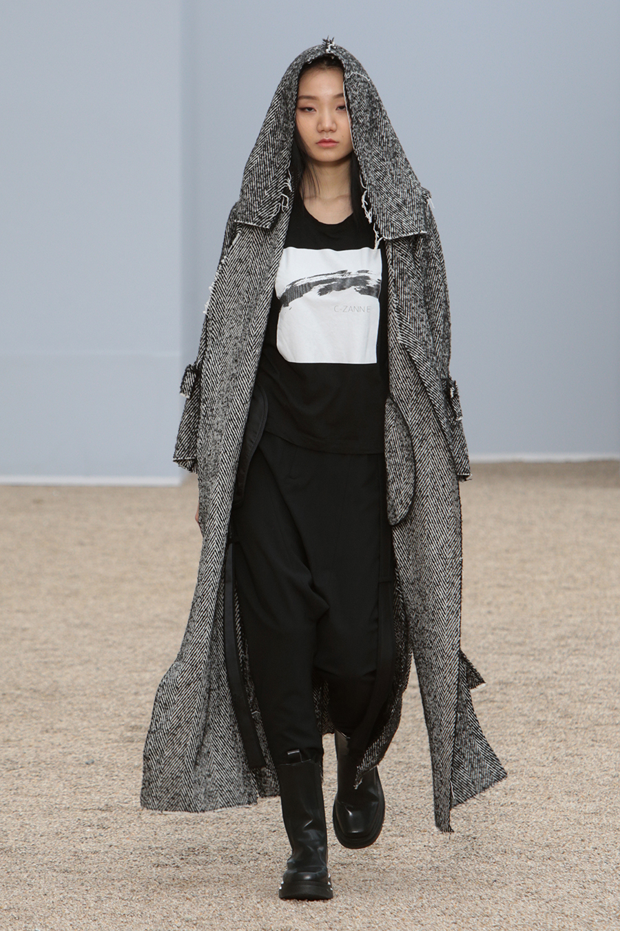 C-ZANN E FW22 collection concept is “The Movement & Freedom” The collection is inspired from Korean old painting “A Boy Dancer” by the painter, Hongdo Kim, from Chosun Dynasty, of his movement and the freedom of the dancer. Designed with raw edge and fringe details to set ridged edges be free Designed with crinkle and pleated fabrics to set surface to be free Designed with tie dyed nylon materials to give freedom of patterns Designed to wear reversible and upside-down to give freedom of certain way to be worn.