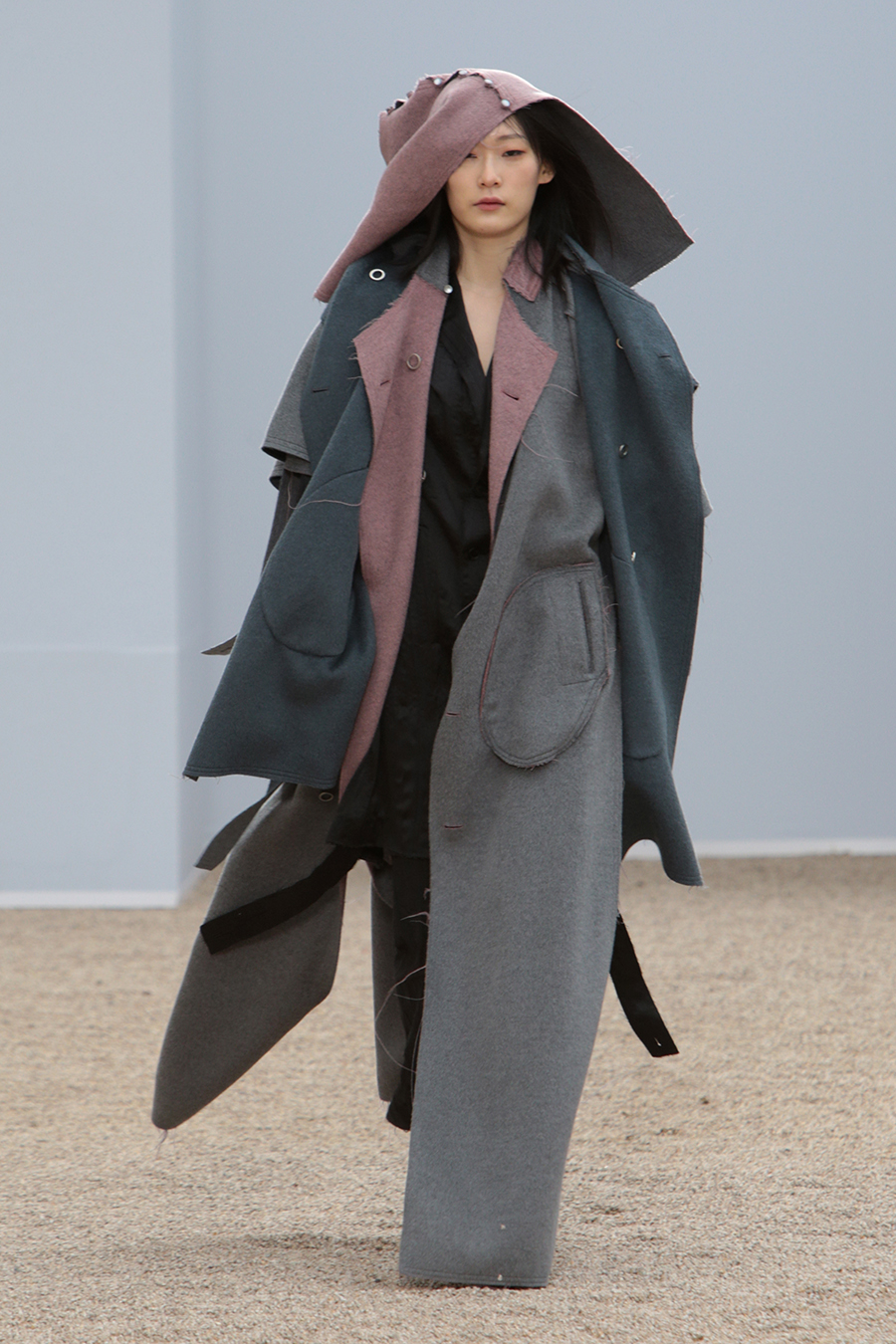 안과 밖을 바꿔 입을 수 있는 reversible design, 아래와 위를 바꿔 입을 수 있는 upside down 디자인으로 정해져 있는 입는 방법으로 부터의 자유로움을 표현. 에코 퍼와 에코 레더라이크 소재의 사용으로 서스테이너블 미래에 대한 자유함을 표현. 입는 이와 주변 공기의 움직임에 따라 자유로이 움직이는 디자인을 표현하였습니다.